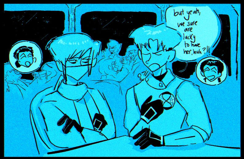 At first he wasn't so serious about graduating but eventually he fell in love with mechanical engineering and became an extremely talented genius and rose up the ranks in the academy. In fact, he was chosen to be one of the candidates for a position (in space? A scholarship? Or a specific aerospace station? There's so much you can actually do with that since it's really important). Because of his genius, many commanders want to scout him and many students want to exploit him for furthering their grades, because everyone wants to go to space and join the overworld - great pressure from the space raceOther ideas i had was that his parents or at least one of them was a professor in the schoolSo he's pretty rich perhaps? Or it's actually one of his family members that support the academy's development just like potentially Pine's but maybe his is more spacey and Pine is more timey